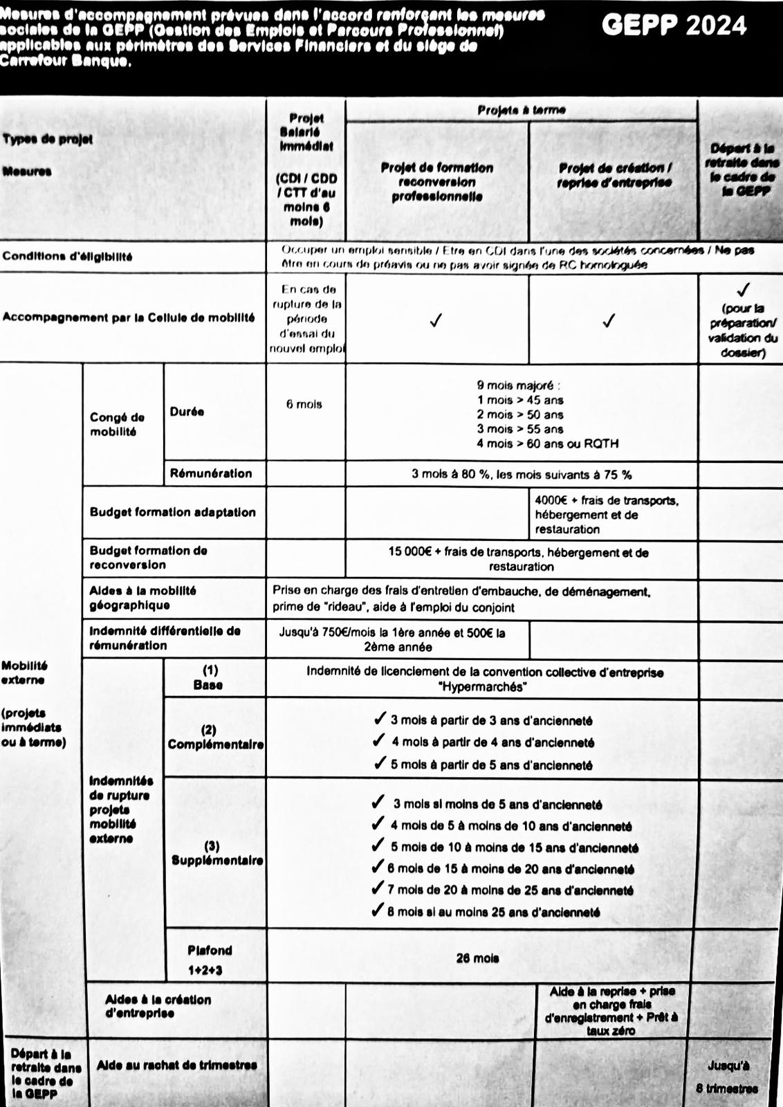 Les revendications des syndicats représentatifs dans le Groupe ont permis d'améliorer substantiellement les mesures d'accompagnement mais, malheureusement, exclusivement sur la mobilité externe.
